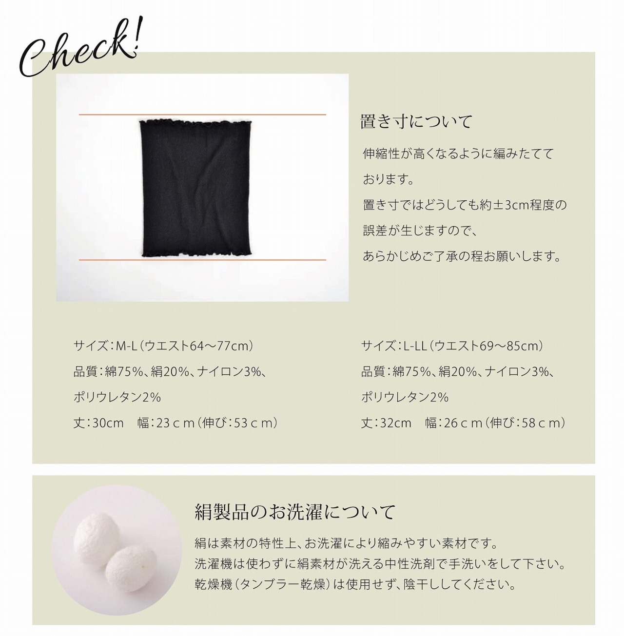 サイズはM〜L(ウエスト64〜77cm)、L〜LL(ウエスト69〜85cm)の2サイズ展開です。