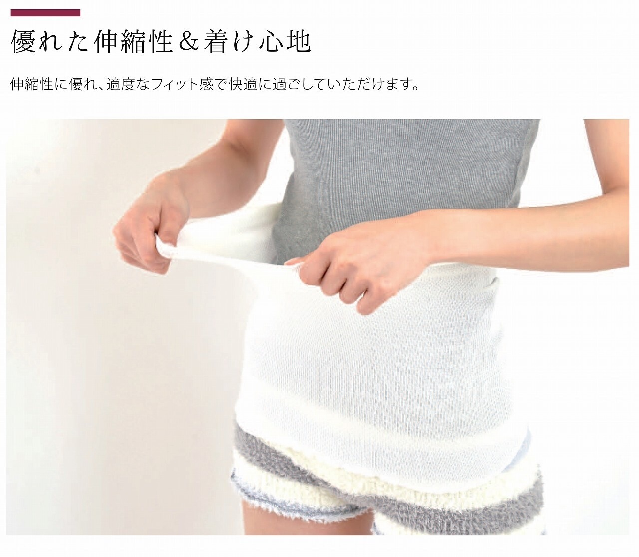 優しい肌触りと伸縮性があり、お腹に食い込まないように仕上げたフリル仕様にしサイドには縫い目がなくスッキリ着用して頂けます。