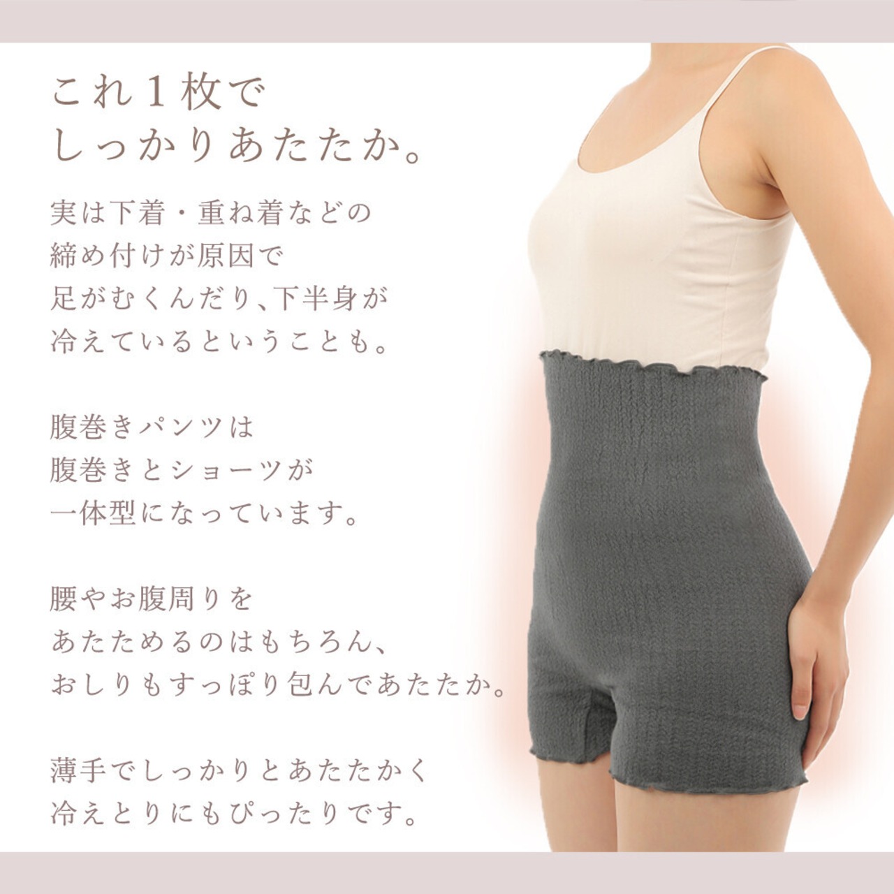 下着と腹巻きが重なると脱ぎ着が面倒、下着の鼠径部の締め付けが苦手そんな方にピッタリの1枚です。