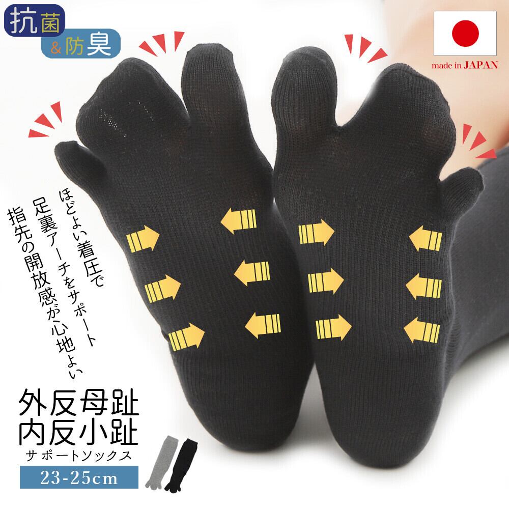 外反母趾・内反小趾サポートソックス(3本指) ブラック