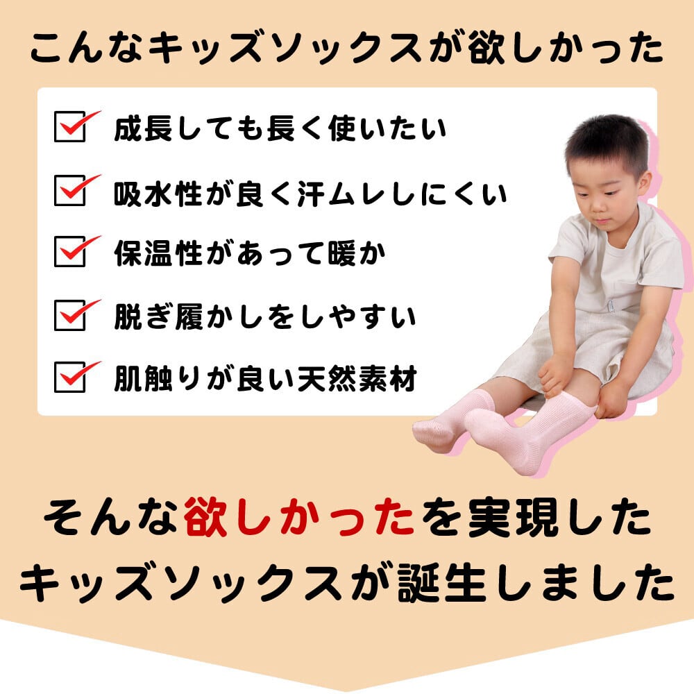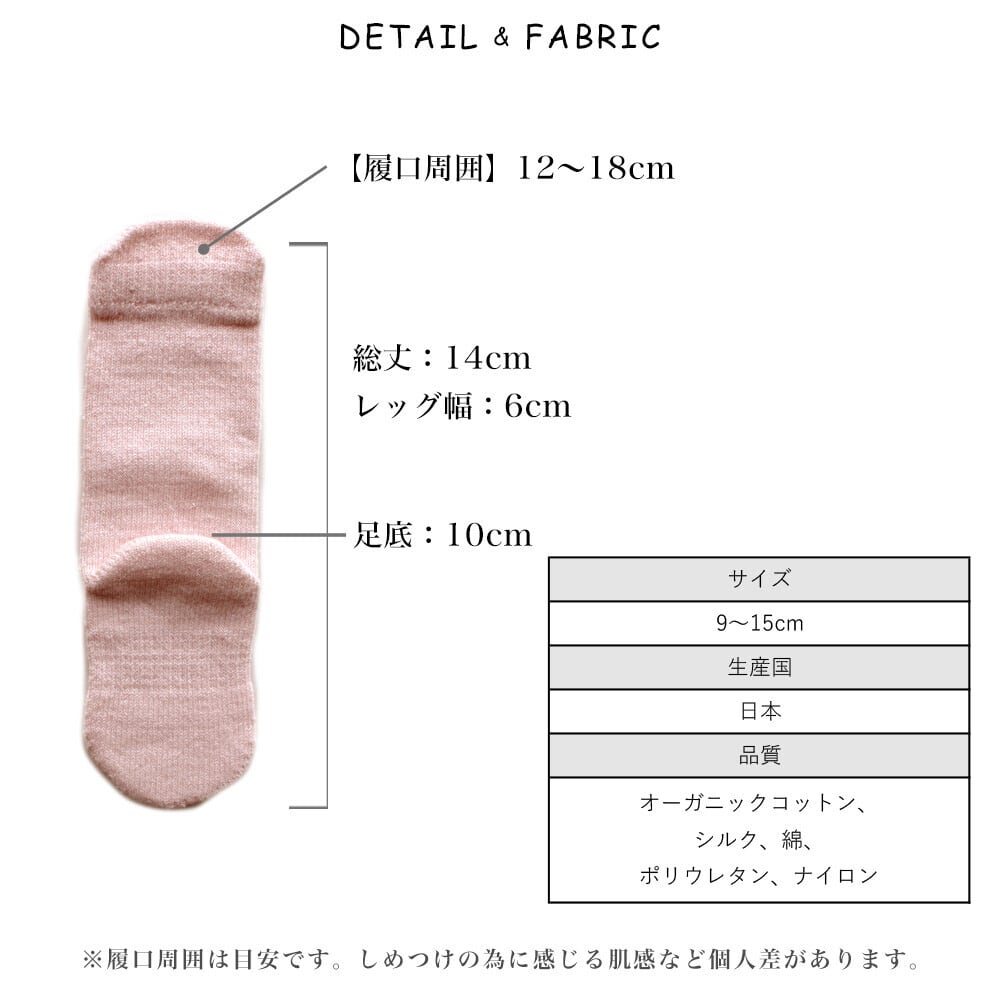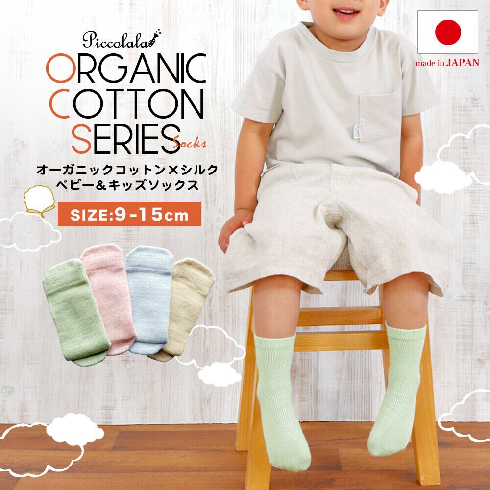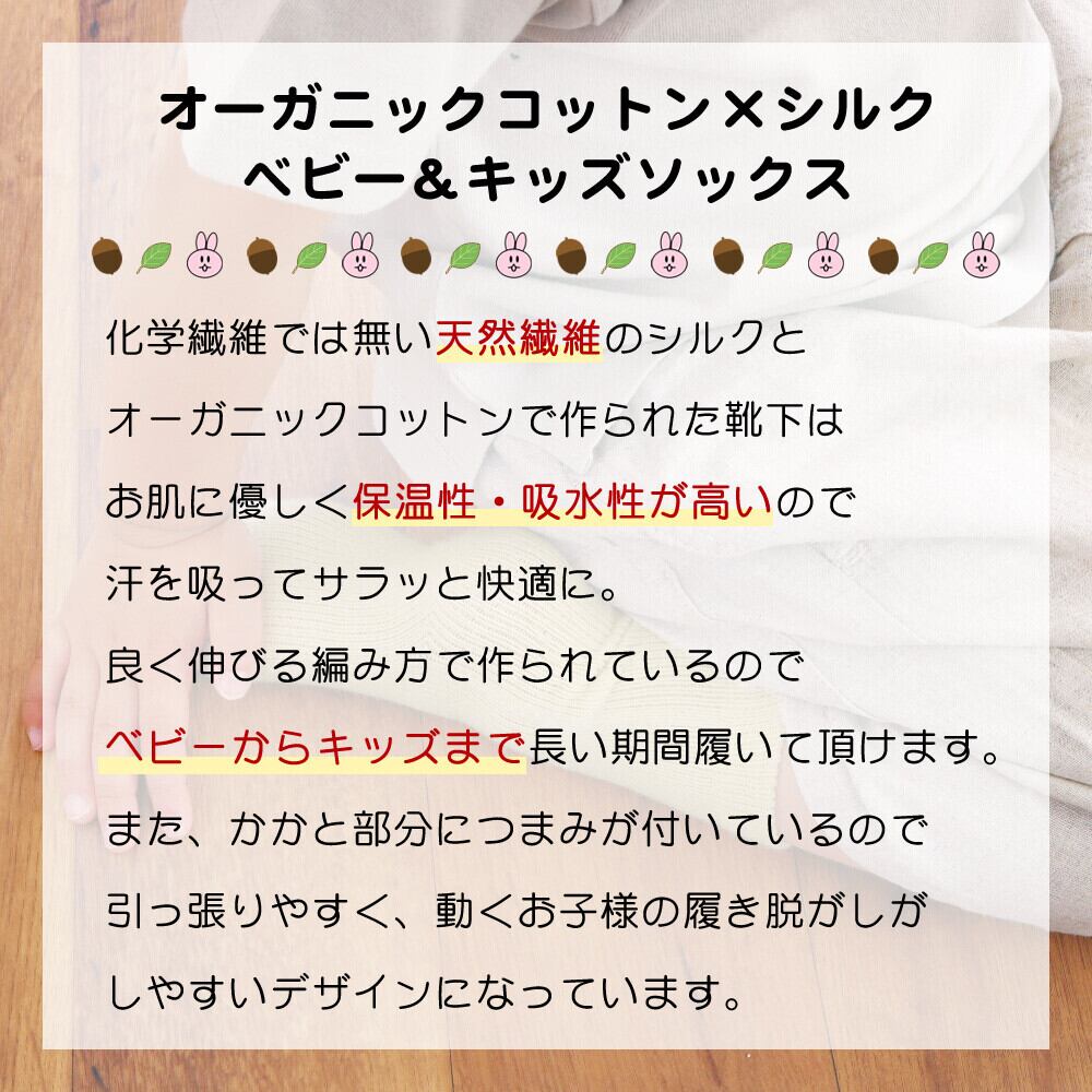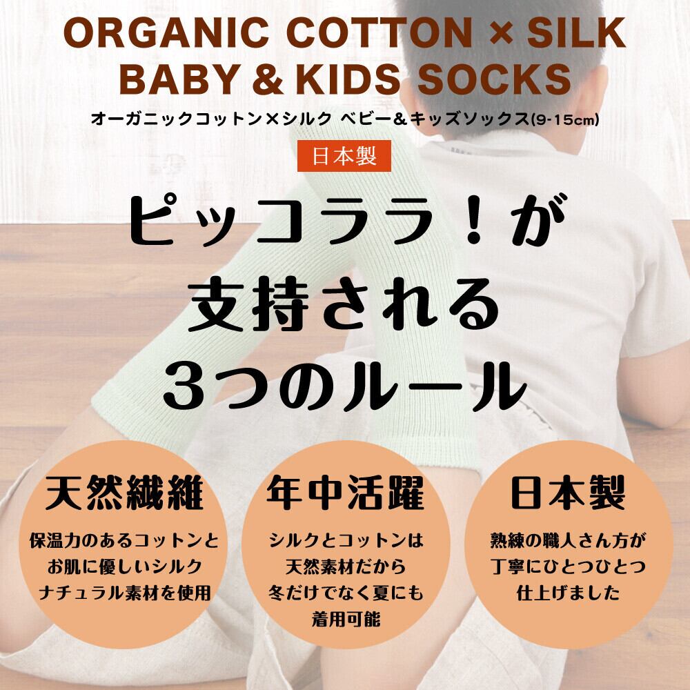 オーガニックコットン シルク素材のベビーキッズソックス(9〜15cm)