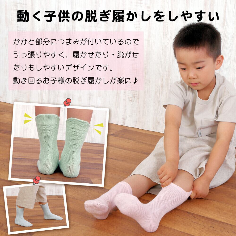 かかと部分につまみが付きているので引っ張りやすく、履かせたり・脱がせたりもしやすいデザインです。